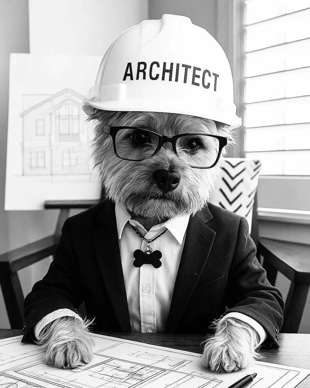 Whether he’s reviewing floor plans or just wagging through the workday, Theo keeps the studio light, warm, and joyful.